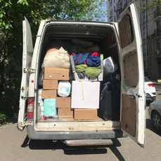 At the start of the trip on the Polish border, we picked up a partially-full van generously donated for our use by UAid Direct. In Kyiv, we finished packing the van with more goods from UAid, until the van was bursting at the seams. Another 6 hours, and we were in Kharkiv to offload everything for a religious outfit who takes care of displaced people.
